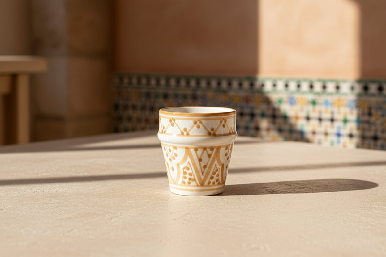 Ontdek de charme van onze prachtige handgemaakte aardewerk beker. Deze unieke beker is met de hand beschilderd door vakbekwame ambachtslieden, waardoor elk stuk een eigen karakter heeft. Geniet van je favoriete warme of koude drank in stijl met deze elegante beker die een vleugje artistieke flair aan je dagelijkse routine toevoegt. Met zijn tijdloze ontwerp en ambachtelijke kwaliteit is deze beker een geweldige aanvulling op je serviescollectie en voegt hij een vleugje elegantie toe aan elke interieur.