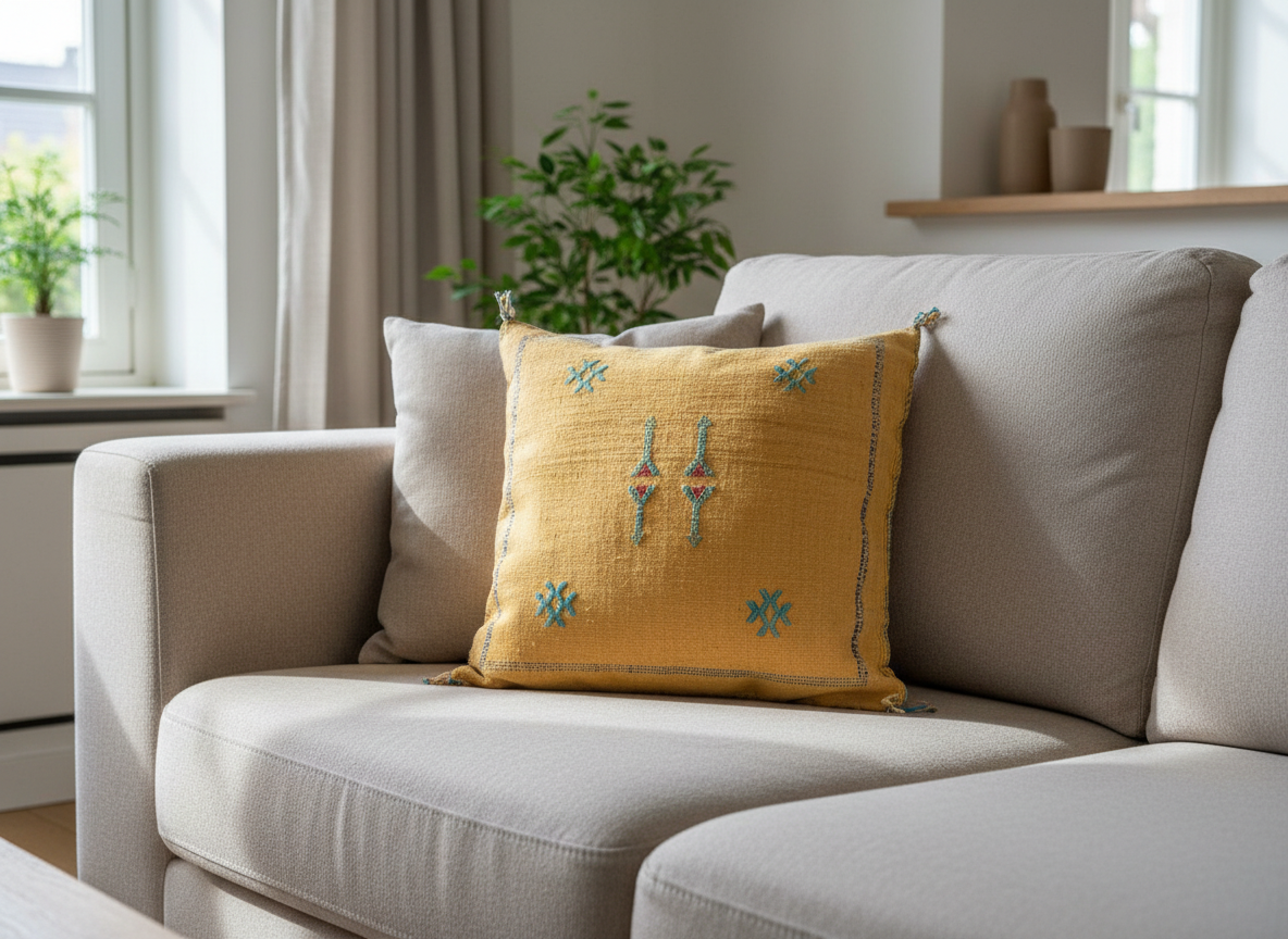 Voeg een bohemien tintje toe aan je interieur met onze handgeweven cactus zijde kussen slopen, gemaakt door ambachtslieden in Marokko. Elke kussensloop is een uniek kunstwerk en is voorzien van borduurwerk en verkrijgbaar in verschillende kleuren en patronen. Deze simpele en abstracte patronen vormen symbolische motieven in Berbers.