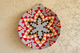 De wandschalen worden volledig met de hand gemaakt in Marokko. Elk stuk krijgt een uniek patroon en kleur, met wol handmatig geweven op de onderzetter. Er is van elke schaal slechts één exemplaar beschikbaar, wat ze uniek maakt.