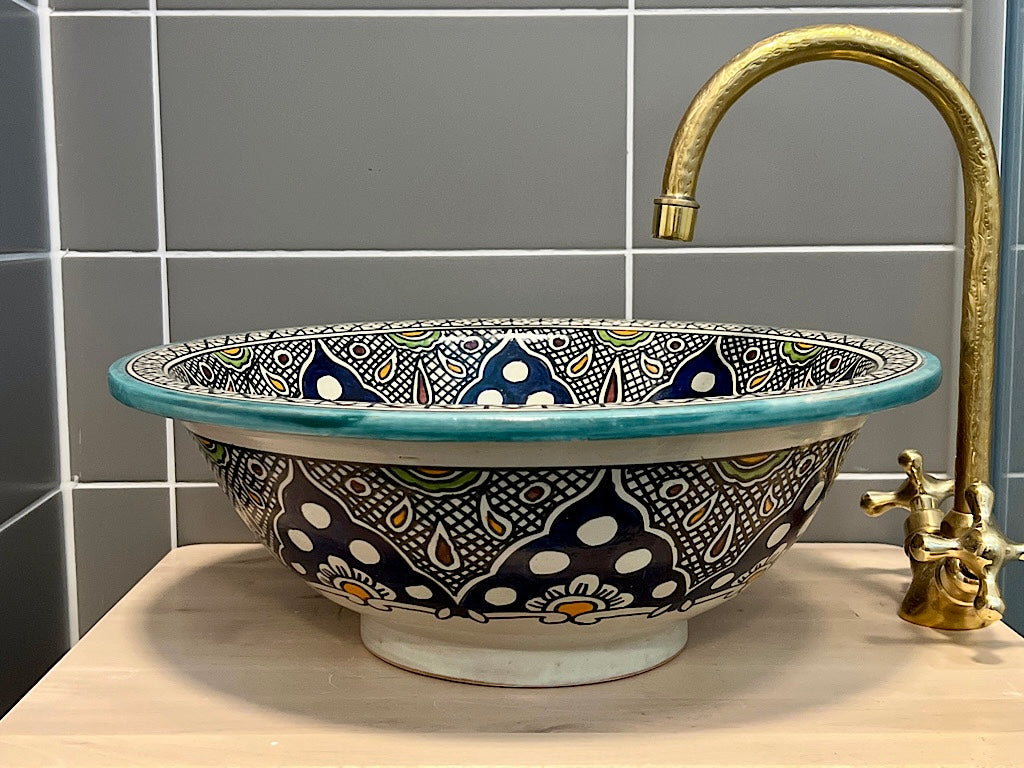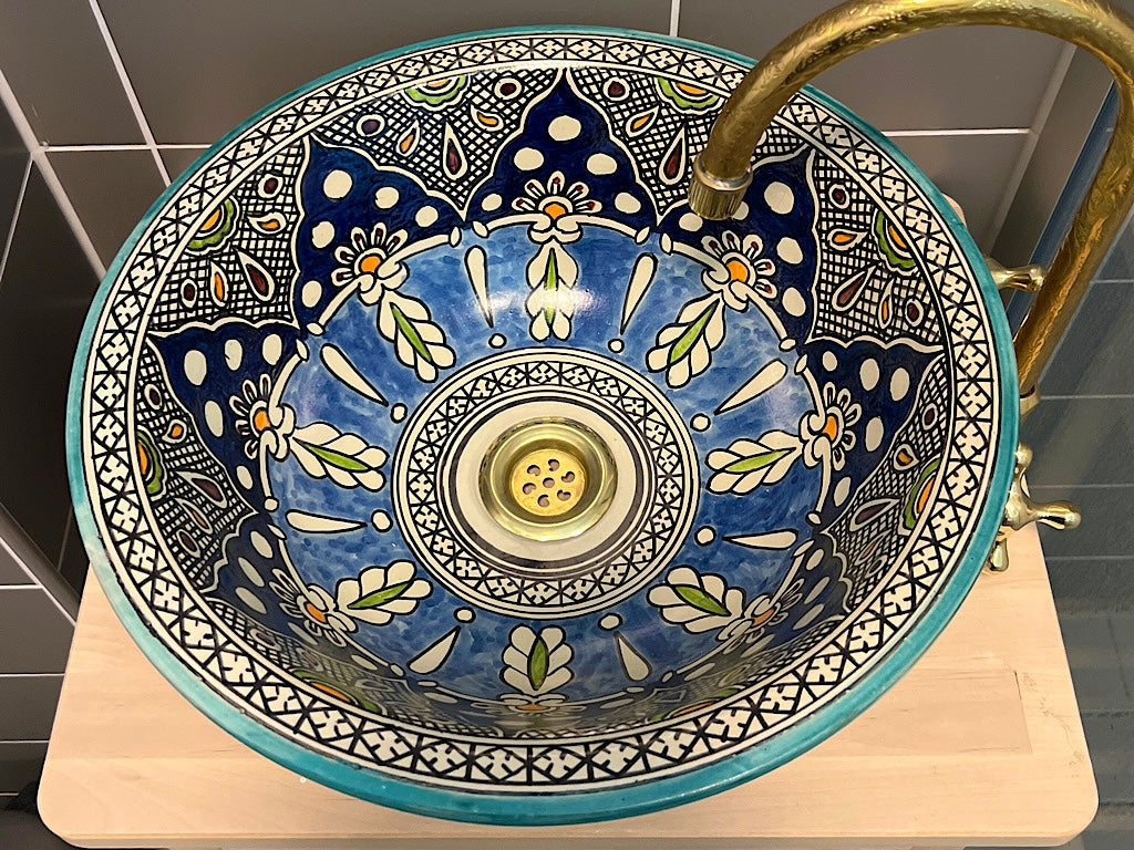 Transformeer je huis in Marokkaanse riad stijl met onze betoverende Marokkaanse waskom, een meesterwerk van traditioneel vakmanschap. Elke Marokkaanse waskom wordt met de hand vervaardigd en zorgvuldig beschilderd door ervaren ambachtslieden uit Marokko, die eeuwenoude technieken gebruiken om een opvallend en functioneel kunstwerk te creëren.