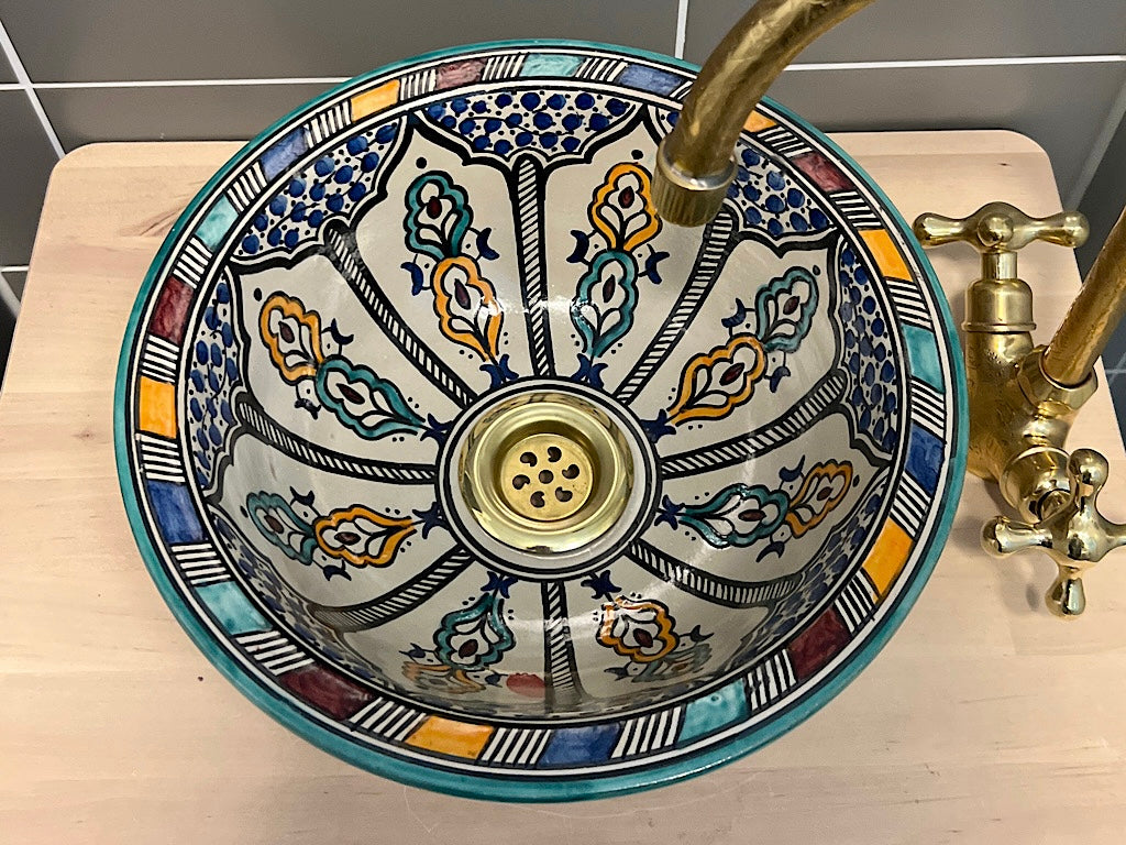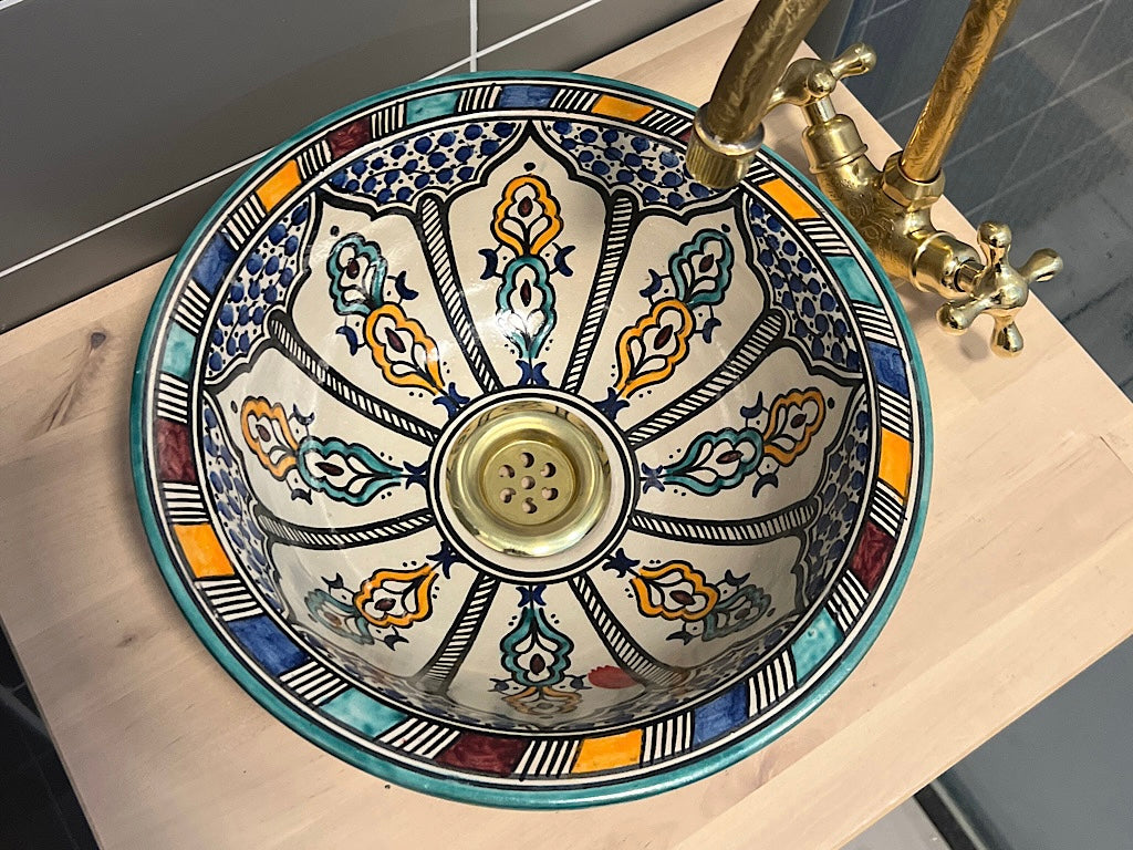 Transformeer je huis in Marokkaanse riad stijl met onze betoverende Marokkaanse waskom, een meesterwerk van traditioneel vakmanschap. Elke Marokkaanse waskom wordt met de hand vervaardigd en zorgvuldig beschilderd door ervaren ambachtslieden uit Marokko, die eeuwenoude technieken gebruiken om een opvallend en functioneel kunstwerk te creëren.