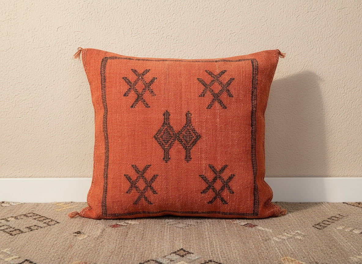 Voeg een bohemien tintje toe aan je interieur met onze handgeweven cactus zijde kussen slopen, gemaakt door ambachtslieden in Marokko. Elke kussensloop is een uniek kunstwerk en is voorzien van borduurwerk en verkrijgbaar in verschillende kleuren en patronen. Deze simpele en abstracte patronen vormen symbolische motieven in Berbers.