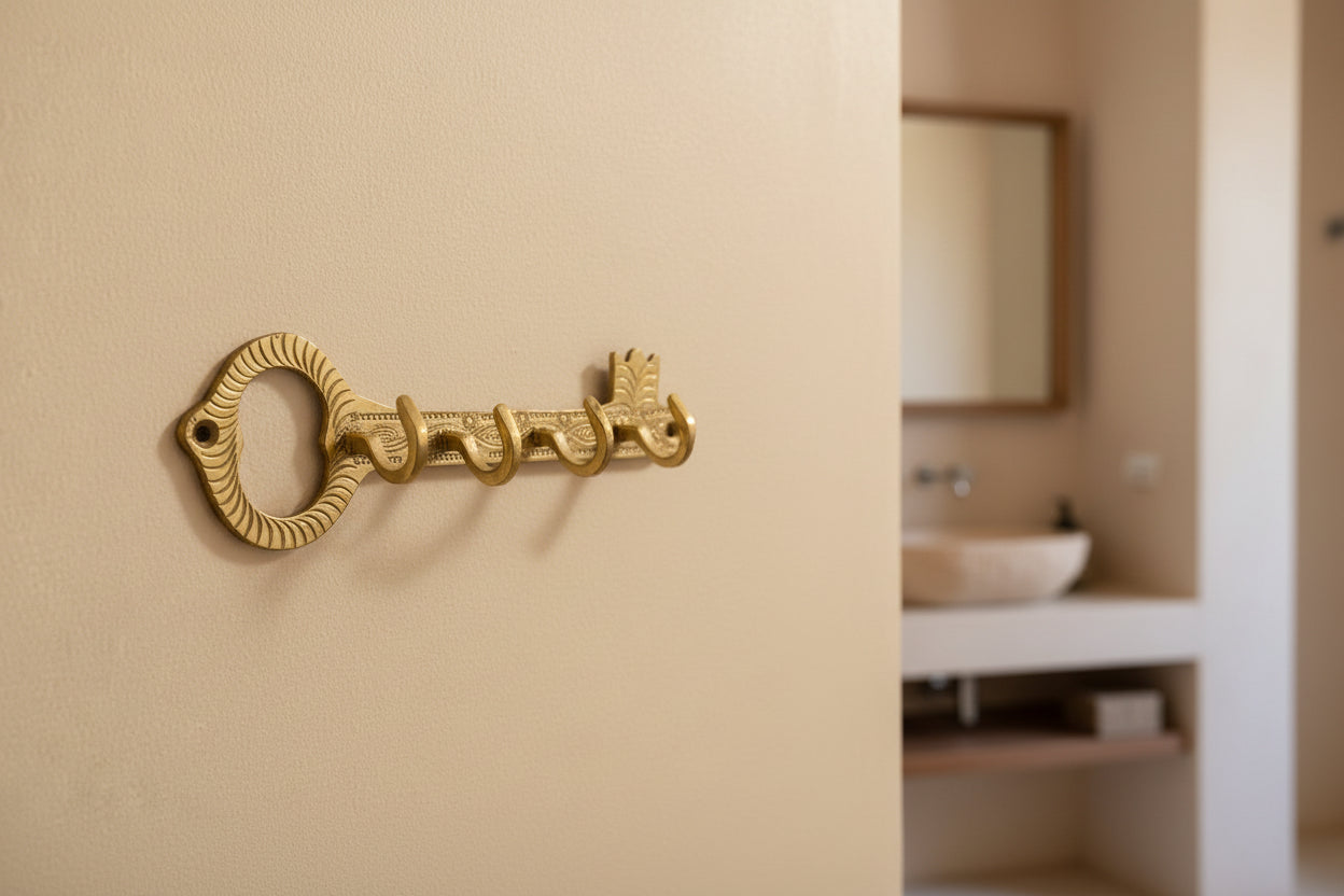 Dankzij het stevige materiaal is de haak perfect geschikt voor het ophangen van handdoeken in de badkamer of het toilet. Daarnaast is hij ook ideaal te gebruiken als sleutelhaak in de hal, of voor kleine accessoires zoals washandjes of sieraden. Door het tijdloze en ambachtelijke design past deze messing haak zowel in een bohemian, oosterse als moderne interieurstijl.
