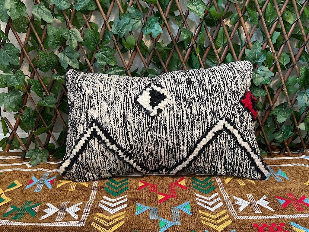 Laat je betoveren door onze Kelim kussensloop in de tijdloze kleuren zwart en wit, met liefde met de hand geweven door bedreven ambachtslieden in Marokko. Elke kussensloop is een uniek kunstwerk en brengt de rijke Marokkaanse cultuur en vakmanschap rechtstreeks naar jouw huis, voor een gezellige en stijlvolle sfeer.